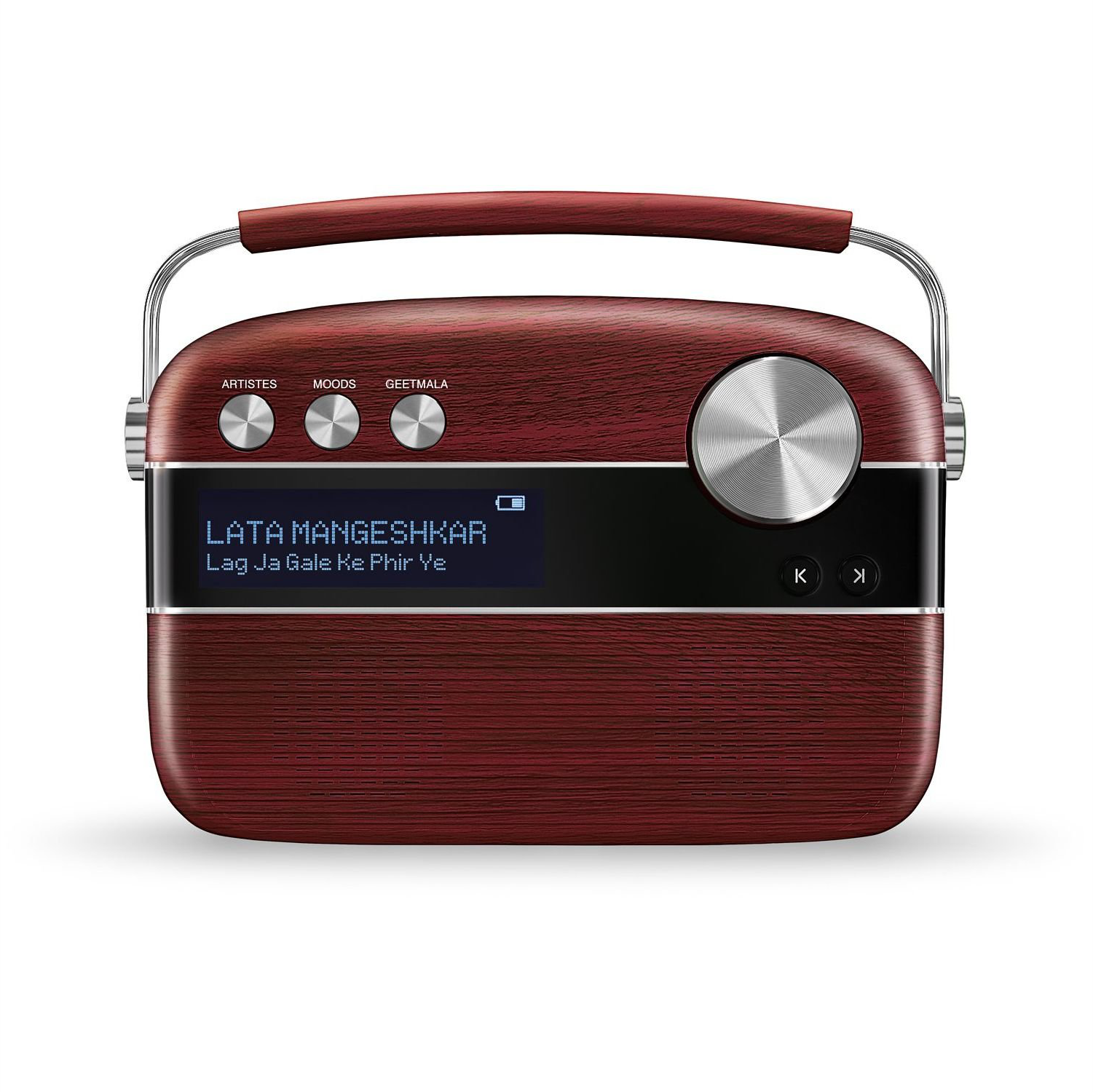 The 5000 songs music collection on Saregama Carvaan have been handpicked and classified based on singers, lyricists, music composers, moods etc. Each category can be selected by turning a jog-dial. So literally, with a simple turn of the knob, you can switch between Kishore Kumar classics, to R.D Burman�s pulsating hits, to timeless love songs or to soulful Sufi tracks � all in their original versions, back-to-back without any ads in between. What�s more, Carvaan has also got the entire Ameen Sayani�s Geetmala countdown show spanning 50 years.